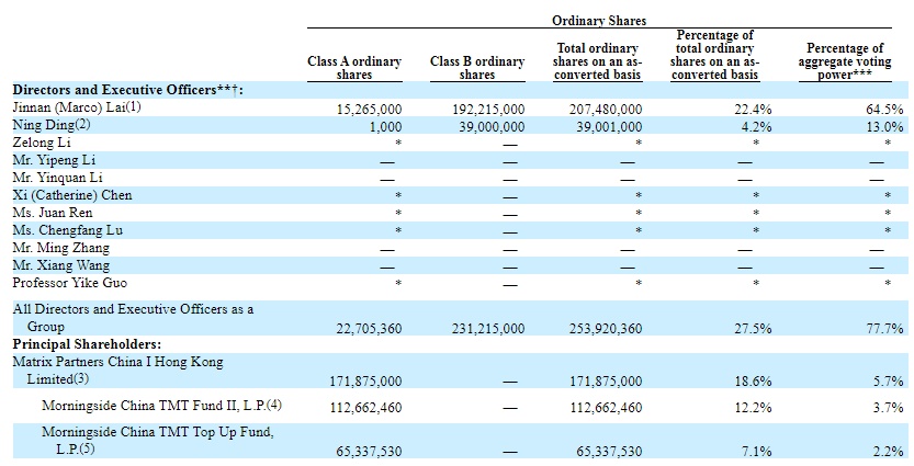 公司创始人、首席执行官兼董事Jinnan (Marco) Lai持有公司22.4%的股权;