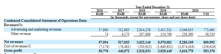 2020年,趣头条净营收为52.85亿元,毛利为36.11亿元。