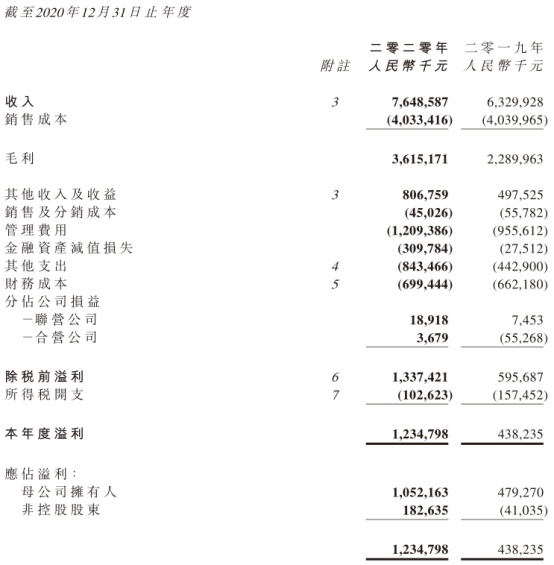 资料显示,公司2020年度因减少了海外营销活动支出,使得销售费率由2019年的0.88%降至2020年的0.59%;财务成本也由2019年的10.46%降至9.14%。虽然管理费用和其他开支有出现增长,但其中主要原因是有近5.2亿的物业、厂房及设备减值。