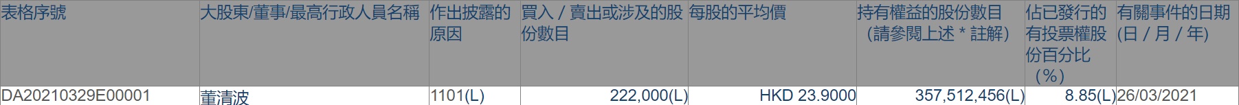 智通财经APP获悉,香港联交所最新资料显示,3月26日,大股东董清波增持信义玻璃(00868)22.20万股,每股作价23.90港元,总金额约为530.58万港元。增持后最新持股数目约为3.5751亿股,最新持股比例为8.85%。