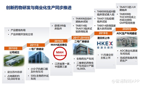 2019年公司的核心产品TAB008完成三期临床受试者入组,另一款核心产品TAB013也完成临床一期试验;同年11月,公司在港交所上市。