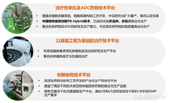 公司拥有治疗性单抗及ADC药物技术平台、以基因工程为基础的治疗技术平台以及创新给药技术平台。