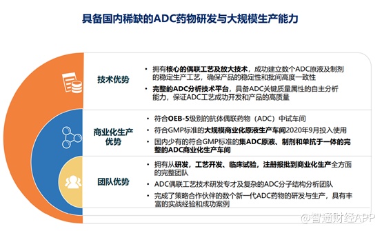 东曜药业在ADC产品上有完整的ADC分析、偶联工艺及放大技术、有符合GMP标准的和集ADC原液、制剂和单抗于一体的ADC生产车间,以及有从研发,工艺开发,临床试验,注册报批到商业化生产的完整团队的综合优势。