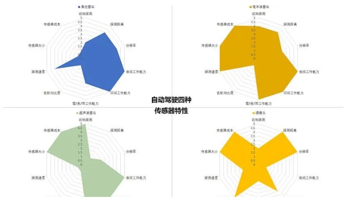 如果用5分作为满分,那激光雷达的只在夜间和日间工作能力这两项上,做到了满分。这两项满分的,除了激光雷达,超声波雷达和毫米波雷达也都能做到,那为什么非要激光雷达呢?