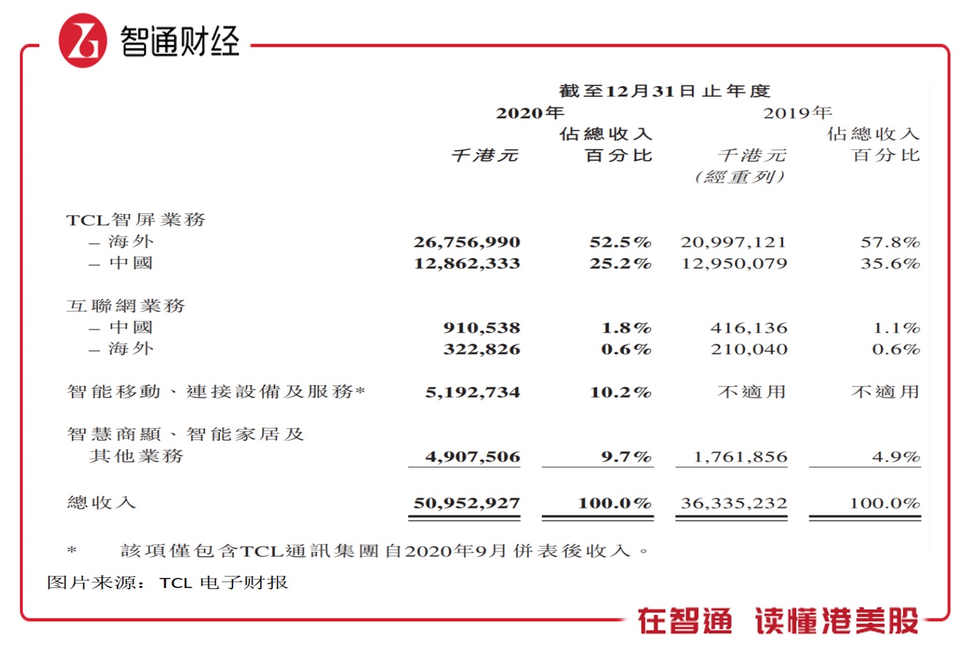 智通财经APP了解到,TCL电子是全球电视机龙头,2020年聚焦品牌业务,围绕智慧显示核心,深入推进AI x IoT战略,8月剥离了电视机的ODM代工业务,9月并表了智能移动业务,扩宽业务赛道。目前该公司业务体系包括TCL智屏、互联网业务、智能移动及连接设备和智慧商显及智能家居业务。