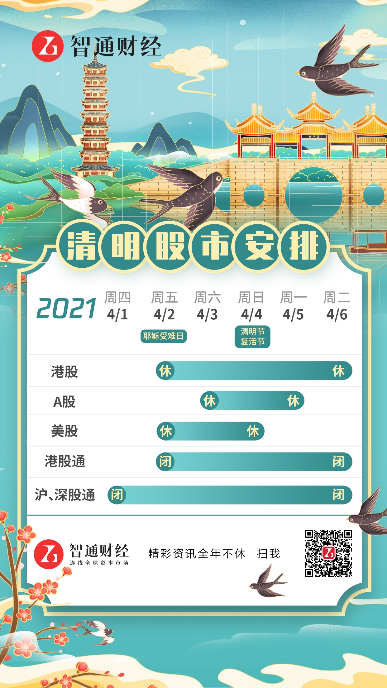 智通财经APP获悉,在耶稣受难日、清明节、复活节假期期间,4月2日(星期五) 至4月6日(星期二)港股休市,4月7日(星期三)恢复正常交易。