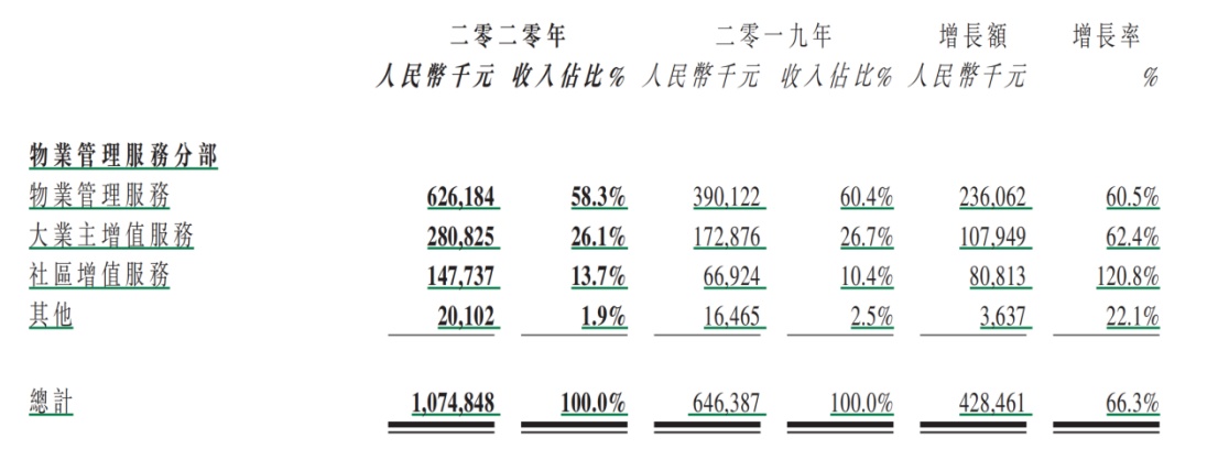 以物业管理服务分部为例,2020年奥园健康大业主增值服务实现收入2.81亿元,同比增长62.4%;社区增值服务实现收入1.48亿元,同比增长120.8%。