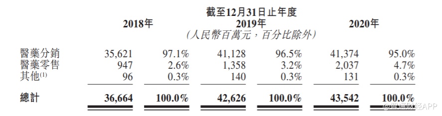 于2019年,公司于华南地区医药分销及零售市场的份额约为12.4%,而于中国医药分销市场的份额则约为2.2%。医药分销业务为公司的主要业务,占于往绩记录期间(2018至2020年)总收入的95%以上。