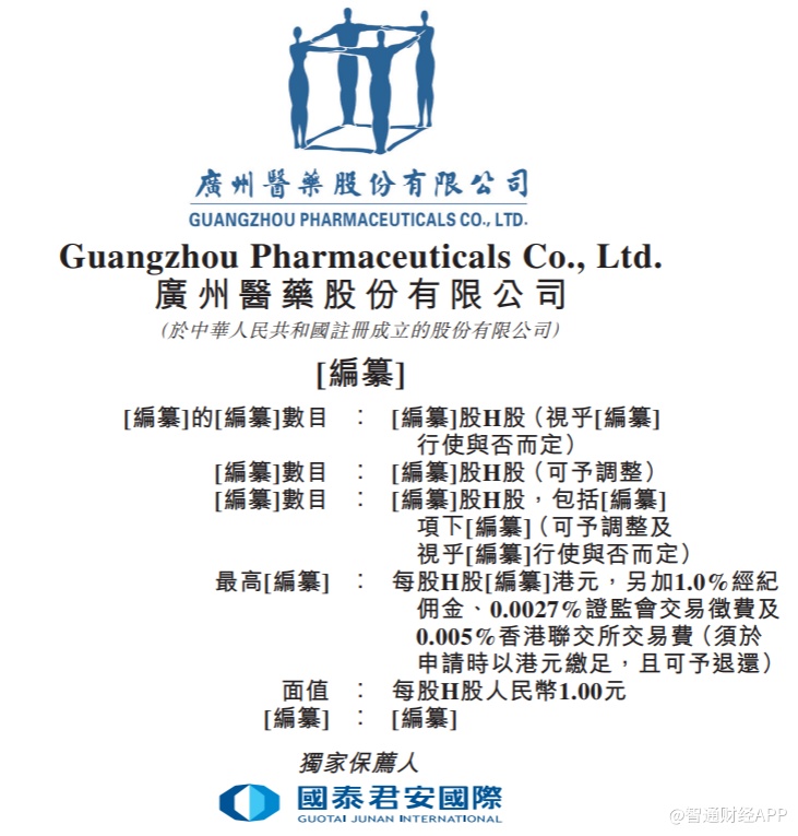 智通财经APP获悉,据港交所3月30日披露,广州医药股份有限公司向港交所主板递交上市申请,国泰君安国际为独家保荐人。