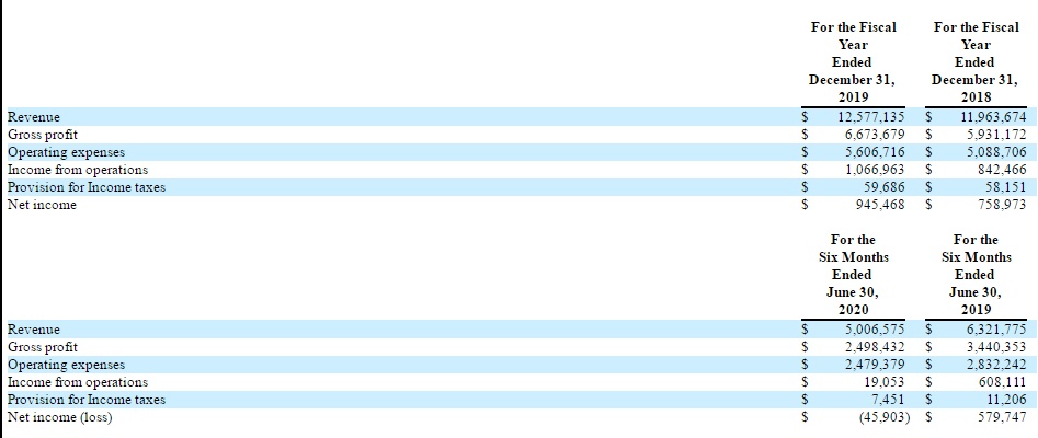 截至2020年和2019年6月30日的六个月内,该公司总营收分别约为500.7万美元和632.2万美元;截至2020年的六个月内净亏损4.6万美元,截至2019年的六个月内净利润58.0万美元。在该期间,该公司在中国的门店分别占总收入的85.2%和77.4%,Chanson 23th Street分别占14.8%和22.6%。
