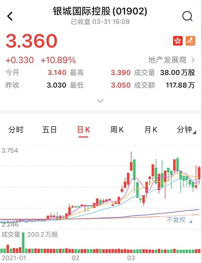 智通财经APP观测到,近年以来,银城国际攀升的规模和营收增速令资本市场看到了公司的成长空间,被低估的公司价值逐渐迎来诸多投资人的青睐。年初至今恒指承压的大市中,银城国际却逆势一路高歌猛进,并于3月初创上市新高3.64港元,绩后次日更是拉涨10.89%,收至3.36港元,当前累计涨幅超过40%,可见其市值高速成长已成为既定趋势。