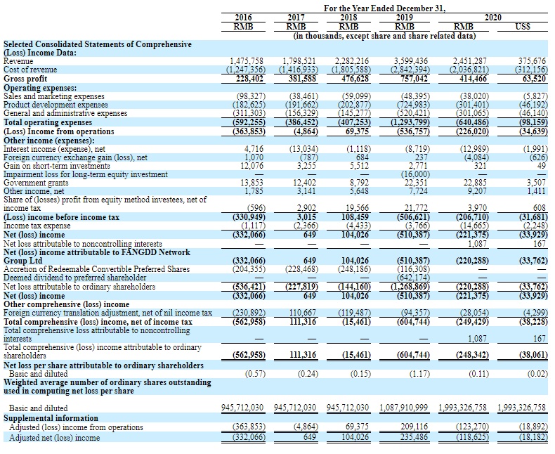 智通财经APP获悉,房多多(DUO.US)向美国SEC递交了20F报告,披露了公司截至2020年12月31日的2020年年报和最新股权结构,其中公司2020年营收为24.51亿元(人民币,下同),上年同期为35.99亿元。