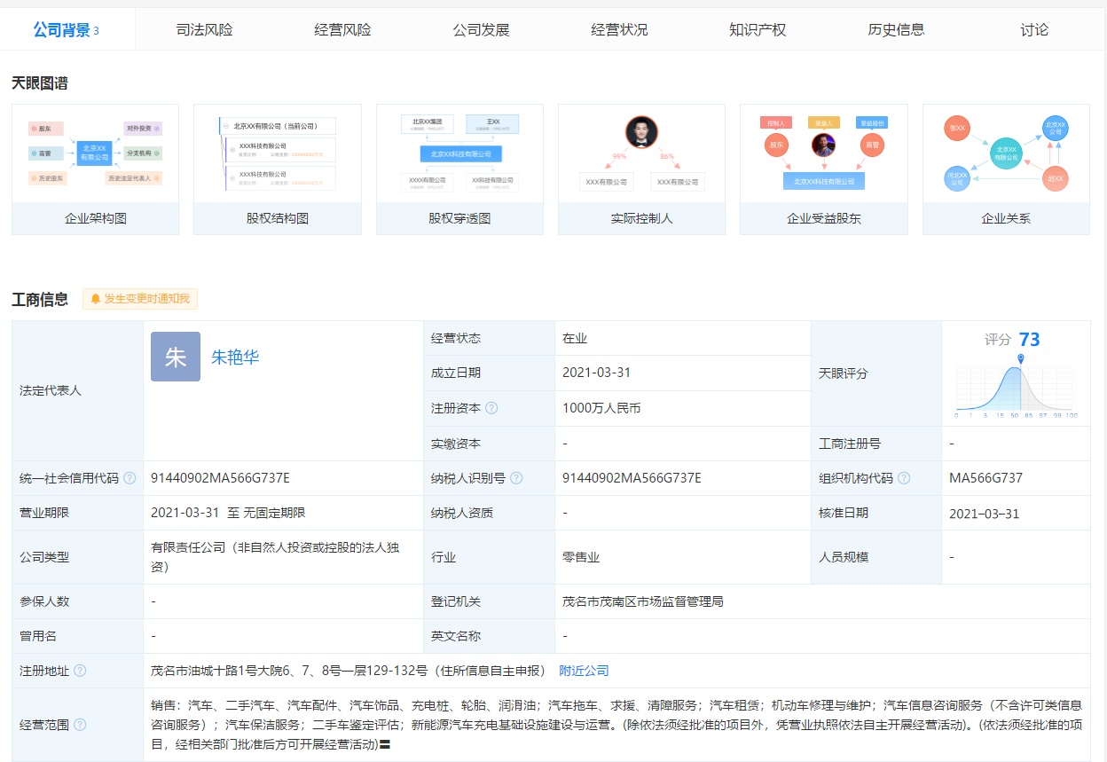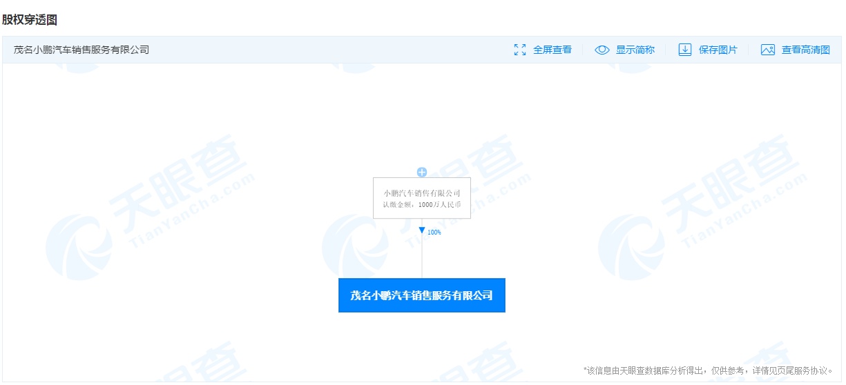 智通财经APP获悉,天眼查App显示,3月31日,茂名小鹏汽车销售服务有限公司成立,注册资本1000万人民币,法定代表人为朱艳华。该公司经营范围包括销售汽车、二手汽车;汽车租赁;机动车修理与维护;汽车保洁服务;二手车鉴定评估;新能源汽车充电基础设施建设与运营等。据悉,股权穿透图显示,该公司由小鹏汽车(XPEV.US)销售有限公司100%持股。