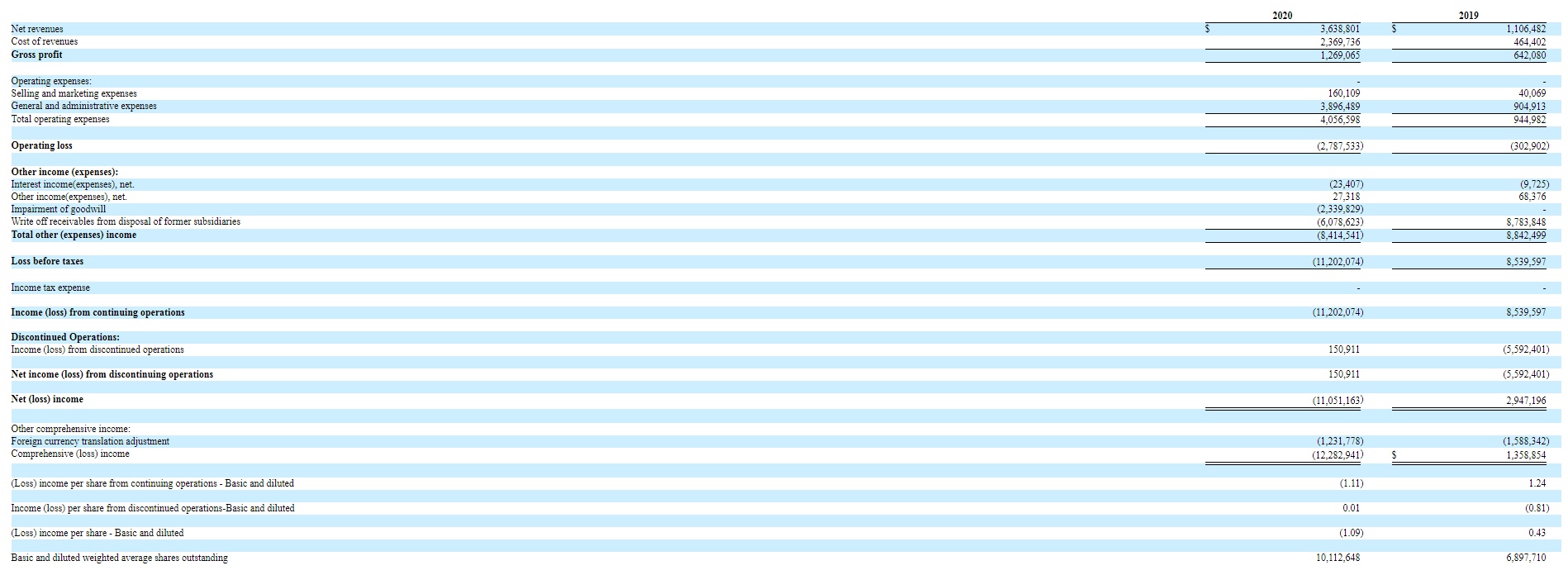 财务方面,公司2020年净营收为364万美元,同比增长229%;毛利为127万美元,同比增长98%;净亏损为1105万美元,上年同期录得净利润295万美元;每股亏损1.09美元,上年同期录得每股收益0.43美元。