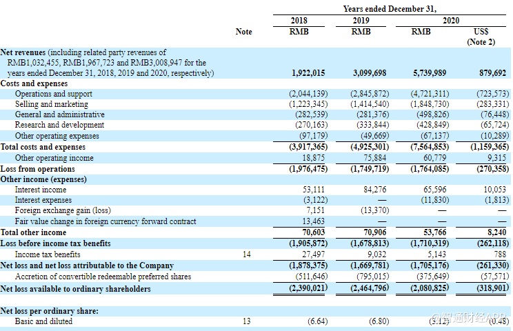 达达集团2020全年总营收57亿元人民币,同比增长85%;全年归母净亏损为17.05亿元,亏损同比增长2%;摊薄后每股亏损3.12元,去年同期为每股亏损6.8元。