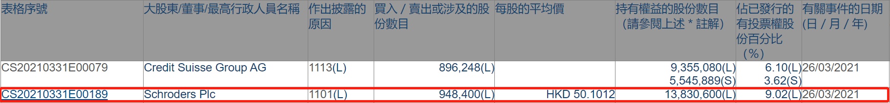 智通财经APP获悉,香港联交所最新资料显示,3月26日,Schroders Plc增持保利物业(06049)94.84万股,每股作价50.1012港元。总金额约为4751.60万港元。增持后最新持股数目约为1383.06万股,最新持股比例为9.02%。