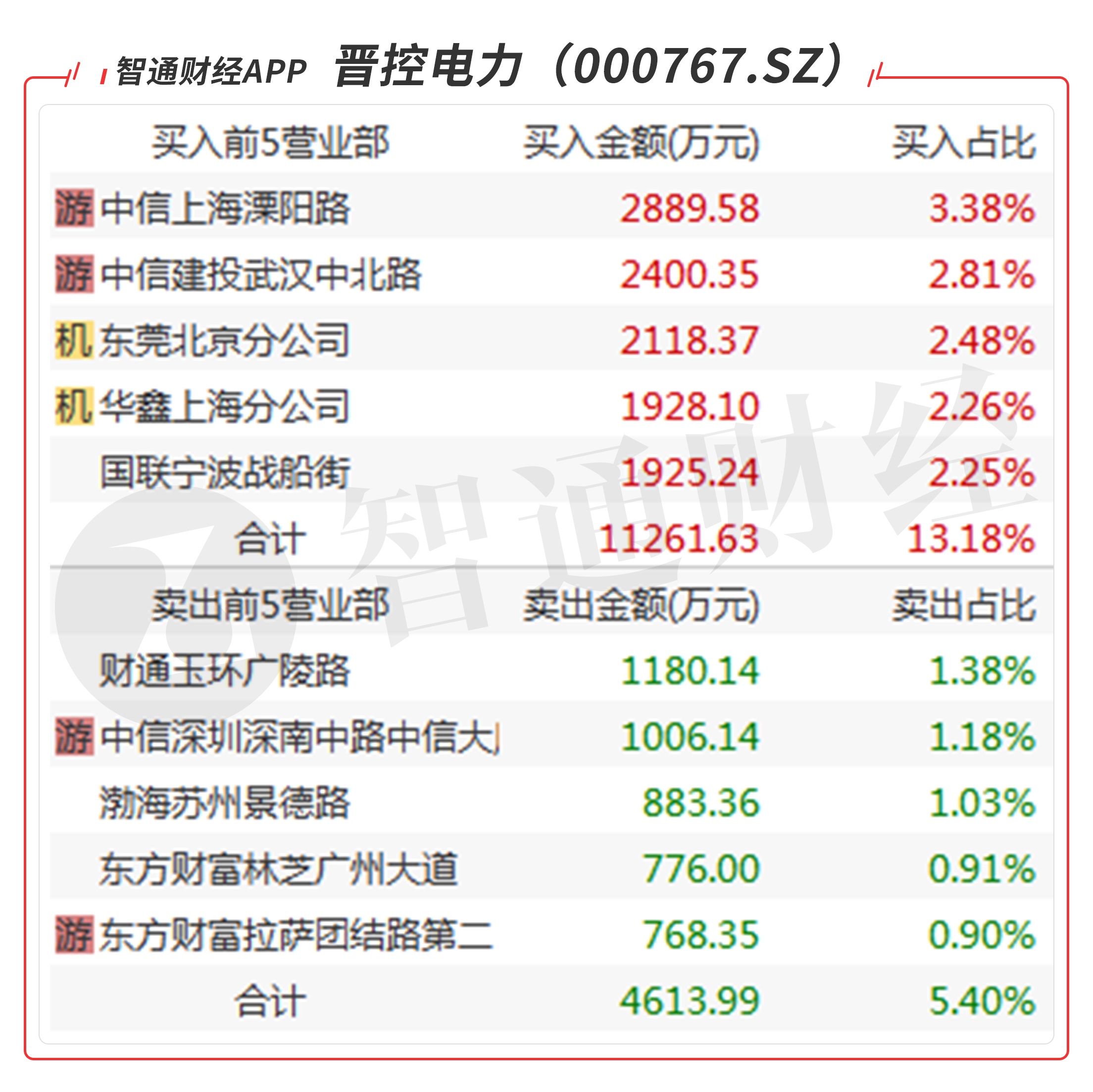 晋控电力(000767.SZ):受多家游资青睐,买一、买三、买四是知名游资的席位共买入7484万元,其中买一是知名游资孙哥的席位买入2889万元,当日净买入8349万元,该股近期在箱体震荡,今日盘中逆转,跌4个点拉到涨停,注意平台位置有压力,需要经过充分换手才有望突破。