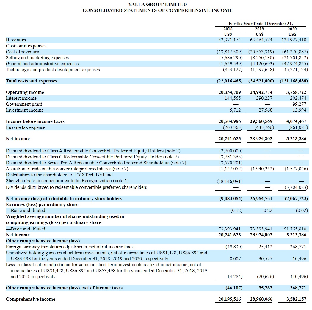 智通财经APP获悉,雅乐科技(YALA.US)向美国SEC递交了20F报告,披露了公司截至2020年12月31日的2020年年报和最新股权结构,其中公司2020年营收达1.35亿美元,同比增长112.6%。
