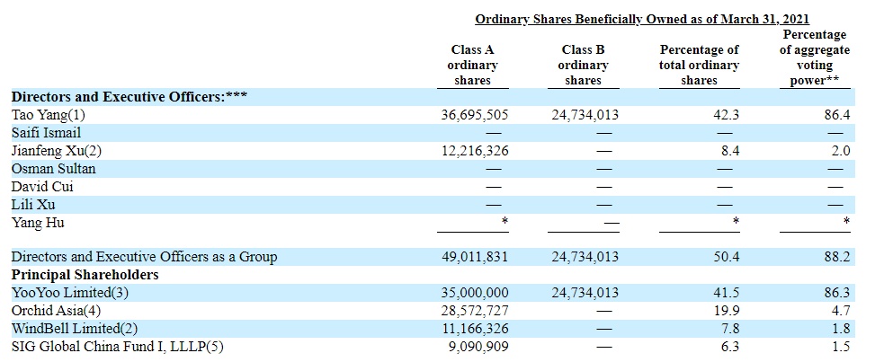 公司董事长兼首席执行官Tao Yang持有公司42.3%的股权,拥有86.4%的投票权;