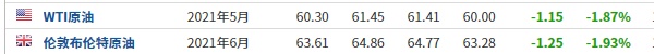 截至发稿,WTI原油跌1.87%,报60.30美元/桶。布伦特原油跌1.93%,报63.61美元/桶。