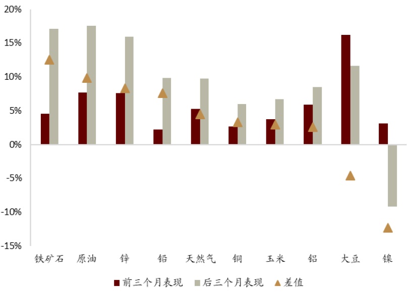 为测算基础设施建设对各类大宗商品消费的影响,我们建立大宗商品的消费强度模型,并且发现工业属性占比的多寡决定了基建活动对需求增长的贡献力度。因此,工业增加值的单位变动对不同大宗商品需求的影响也不尽相同。工业品工业属性更强,也是基建投资增强中最受益的品种,能源板块边际改善相对有限,农产品工业属性较弱,受基建的影响非常有限。根据我们的测算,我们对工业弹性的排序是黑色金属>有色金属>能源>农产品。