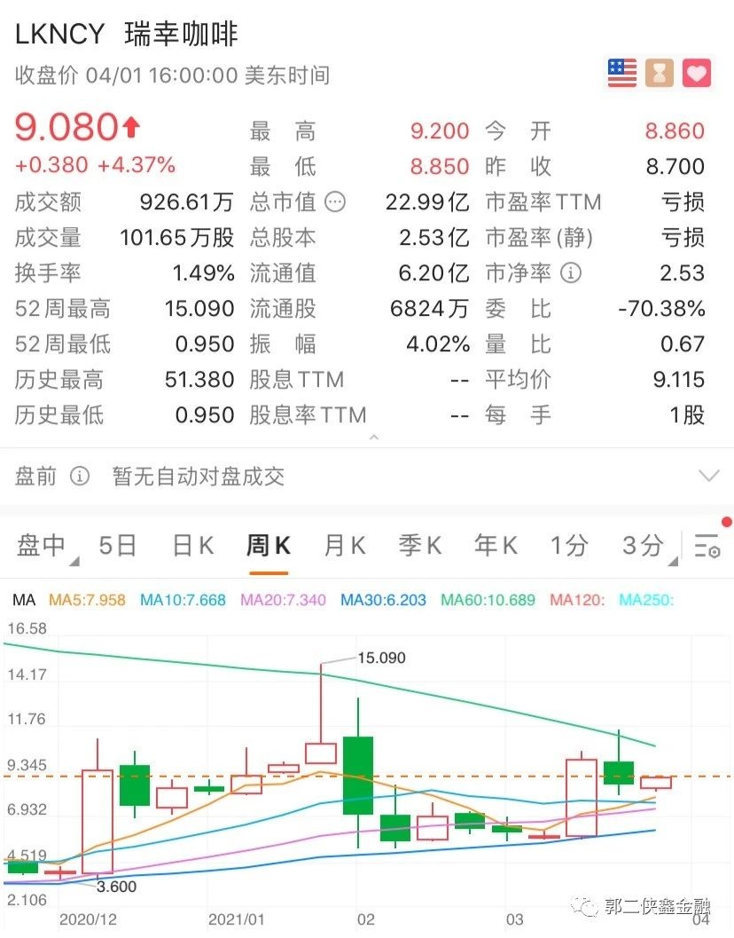 上周四,瑞幸咖啡(LKNCY.US)在美股粉单市场大涨4%,股价再次站上9美元,总市值23亿美元。