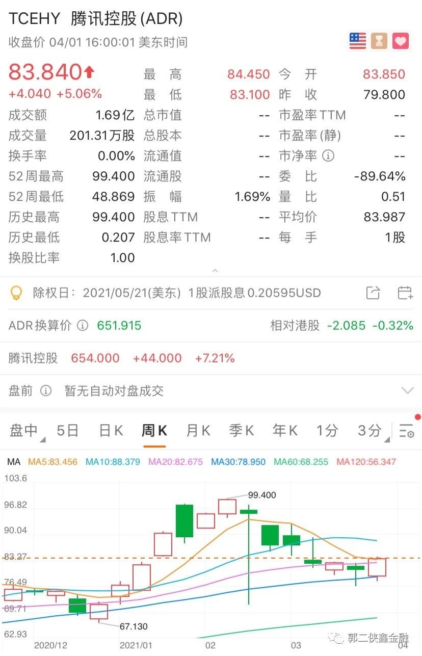 在中国香港上市的腾讯控股,在美国粉单市场上发行的ADR,代码后缀是Y。
