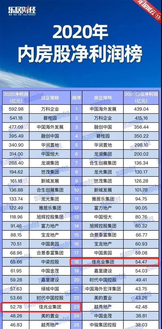 智通财经APP获悉,近日,乐居财经研究院发布“2020年内房股净利润榜”,佳兆业集团(01638)凭借强劲的盈利能力,归母净利润位列榜单第18位,净利润位列第23位。