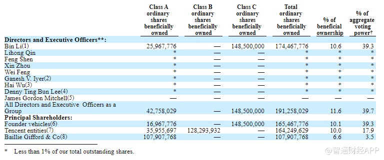 截止至2021年2月28日,公司创始人兼CEO李斌持有公司10.6%的股权,投票权为39.3%。