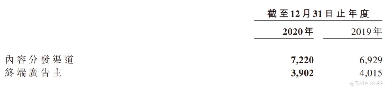 此外,兑吧互动广告的内容分发渠道仍在增长且终端广告主整体保持稳定。与信息流广告不同,互动式广告并不存在于独立的APP,这就需要一个独立的聚合了丰富多样媒体流量入口的第三方平台,内容分发渠道越多,效果广告越好,规模效应越强。2020年,兑吧互动广告的内容分发渠道数量为7220个,较2019年的6929同比增长4.2%。与此同时,终端广告主为3902个,虽较2019年的4015个微降,但整体仍处于稳定状态。