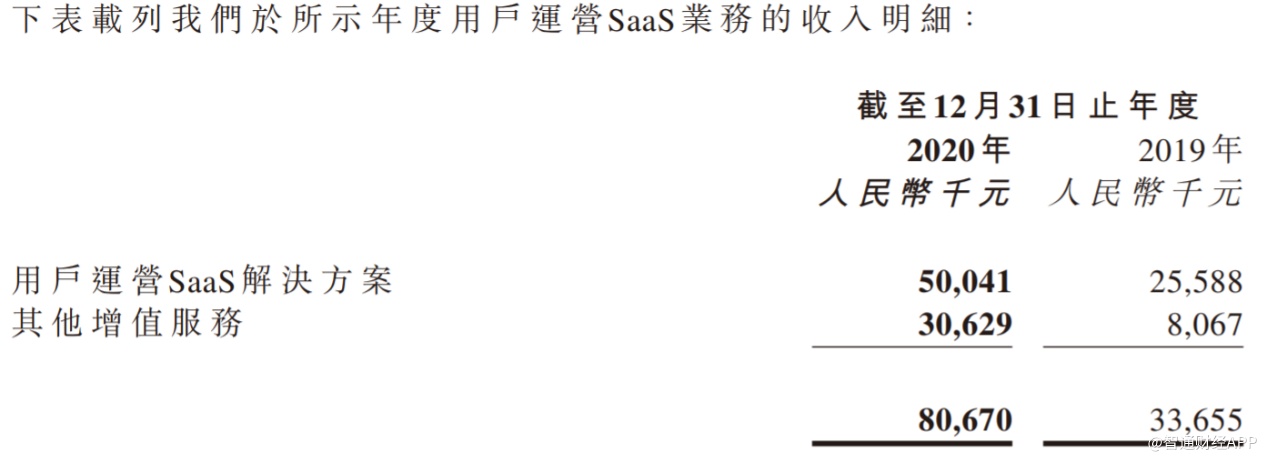 用户运营SaaS平台旨在通过提供多种有趣且有参与性的用户运营工具以实现移动APP用户在APP上活跃,从而帮助企业以具有成本效益的方式吸引和留存线上用户。该业务自2018年4月开始对SaaS业务收费以实现商业化。