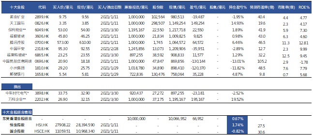 2021年来十大金股组合跑输恒指1.07%,4月换入福莱特玻璃(06865)和保利物业(06049)。2021年来十大金股组合回报率为0.67%,跑输恒生指数1.07%,尽管在2月和3月均换入低估值的价值股,但组合防御性仍不够好,受成长股杀估值影响较大,表现较差的是小米集团(01810)和中国民航信息网络(00696),目前仍看好其后期表现。4月组合换出万科企业(02202)和中车时代电气(03898),换入合理估值、有一定成长性的保利物业和福莱特玻璃。