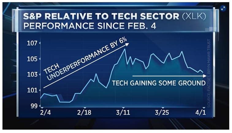 智通财经APP获悉,以苹果(AAPL.US)和亚马逊(AMZN.US)为代表的科技股在经历了一个多月的回调和横盘震荡后,近期似乎有一波反弹。对此,资深投资人、信托公司Bryn Mawr Trust首席投资官Jeff Mills点评道,科技板块的反弹可能不会形成反转。尽管投资者在未来几个月应该能够看到科技板块上涨,但长期可能会跑输大盘。