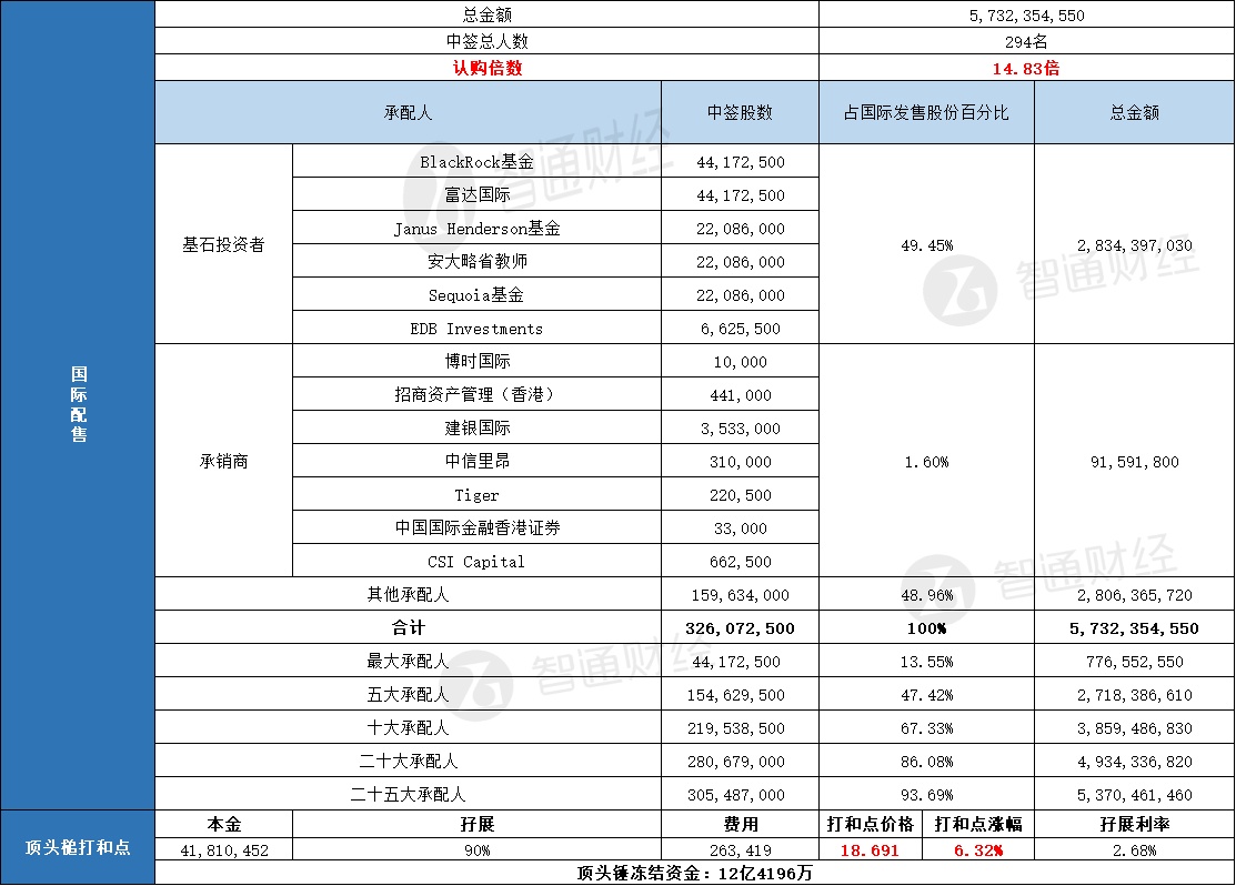 国际配售申购人数未披露,认购倍数约14.83倍。