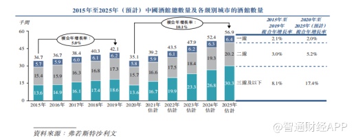 据弗若斯特沙利文报告,2015年中国的酒馆数量达到3.5万家,此后以5%的年复合增长率增长,到2019年中国酒馆数量达到4.2万家。其中,中国三线及以下城市的酒馆数量自2015年至2019年的年复合增长率达8.1%。