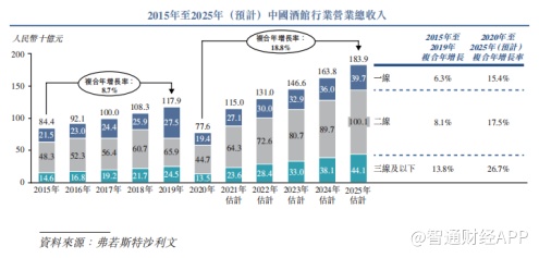 中国的酒馆行业的收入预计将在2025年达到1839亿元,相比于2020年的约776亿元,年复合增长率达到18.8%。