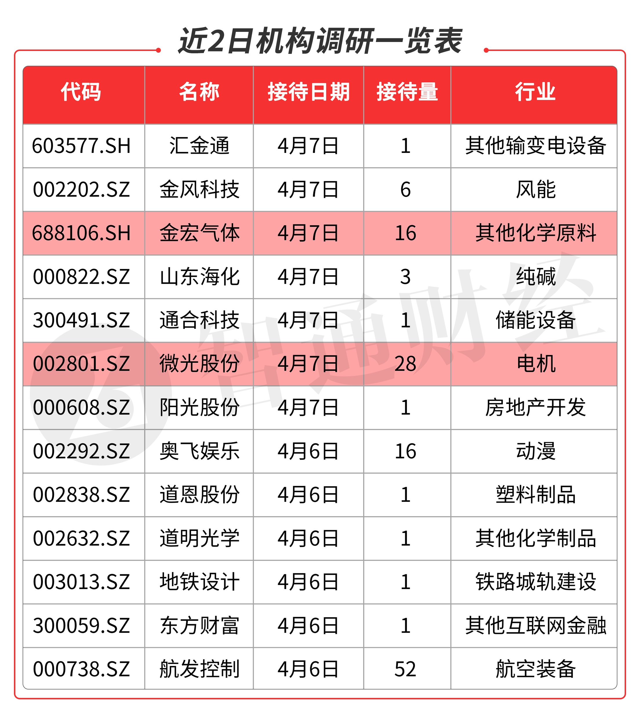 【导读】近期,金宏气体(688106.SH)和微光股份(002801.SZ)获机构密集调研。