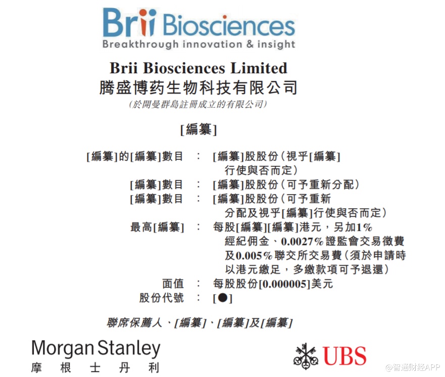 智通财经APP获悉,4月8日,腾盛博药生物科技有限公司向港交所主板递交上市申请,摩根士丹利及瑞银集团(UBS)为联席保荐人。