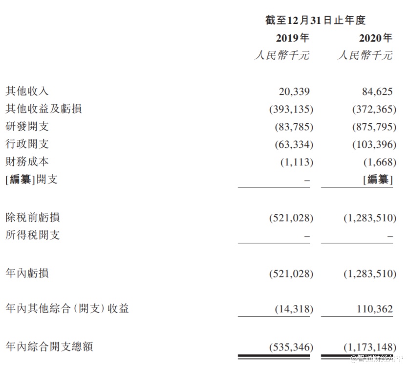 值得注意的是,目前公司的产品尚未获准进行商业销售,尚未从产品销售产生收入。自成立以来的各年度内,公司产生经营亏损。截至2019年及2020年12月31日止年度,综合开支总额分别为人民币(下同)5.353亿元及11.731亿元,公司的绝大部分经营亏损是研发开支及行政开支所致。
