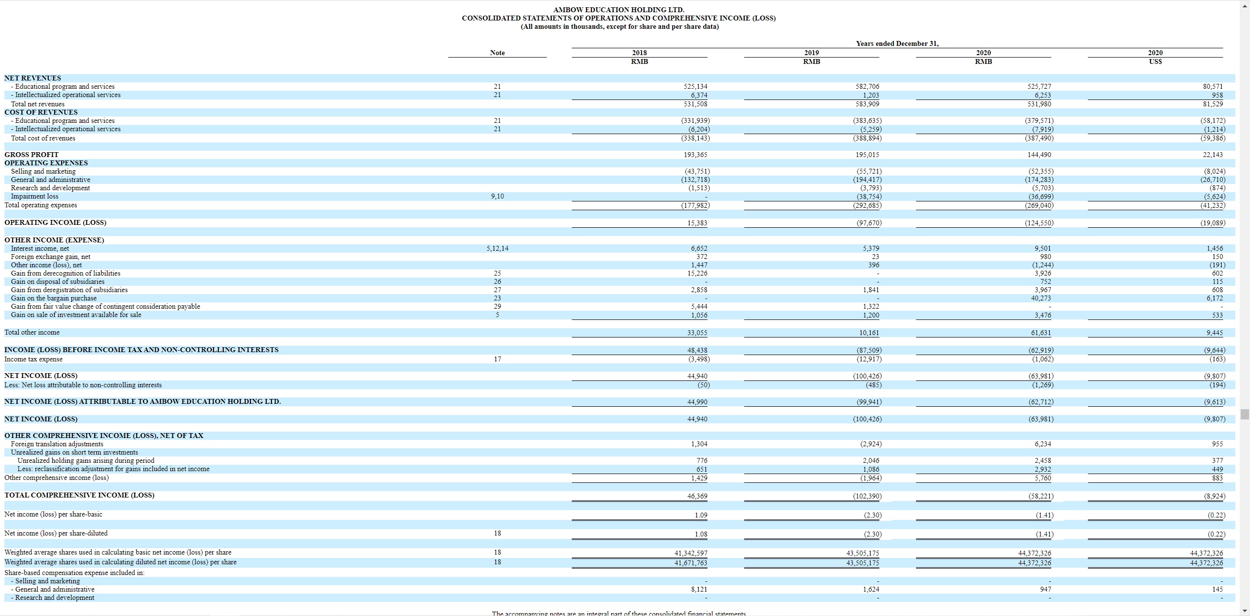 智通财经APP获悉,安博教育(AMBO.US)宣布向美国SEC递交了20F报告,披露了公司截至2020年12月31日的2020年年报和最新股权结构,其中公司2020年营收达5.32亿元(人民币,下同),同比下降8.9%。