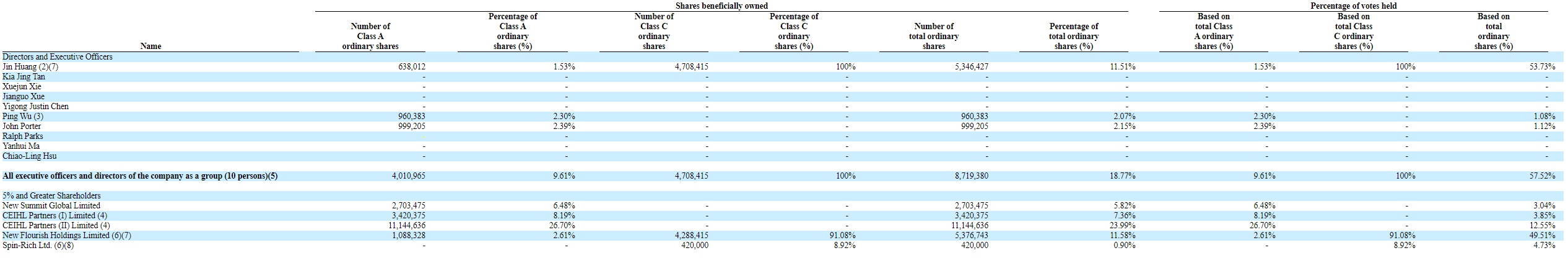 公司总裁、首席执行官兼董事会主席Jin Huang持有公司11.51%的股权,拥有53.73%的投票权;