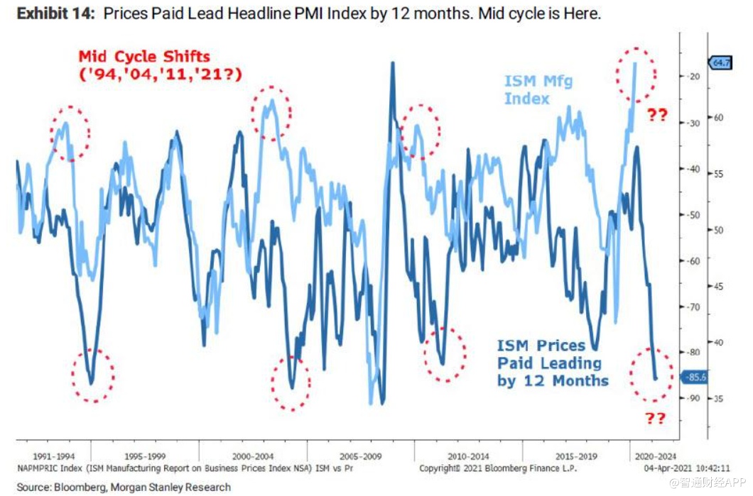 其次,两周前,Wilson建议投资者升级他们的投资组合,增加质量更高的股票,因为这些股票更有可能度过这次重新开放的转型时期。过去一年复苏进程似乎比预期更快,这意味着经济可能会更早地从早期周期转向中期周期,而高质量股票应该会受益。