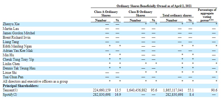 腾讯(00700)持有公司55.1%的股权,拥有90.6%的投票权。