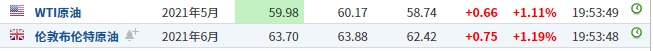 截至发稿,WTI原油涨1.11%,报59.98美元/桶。布伦特原油涨1.19%,报63.70美元/桶。