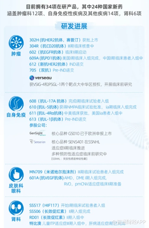 据智通财经APP了解,三生制药目前已在靶点覆盖和研发进度上走在行业前列。正如上文提到,其创新研发管线不仅对众多热门靶点进行了较为全面的覆盖,对当前国内行业尚未过多涉及的白介素系列靶点的研究也处于第一梯队。预计12个月内将有多个具备同类首创或同类最优潜力的在研产品在中美提交临床申请。