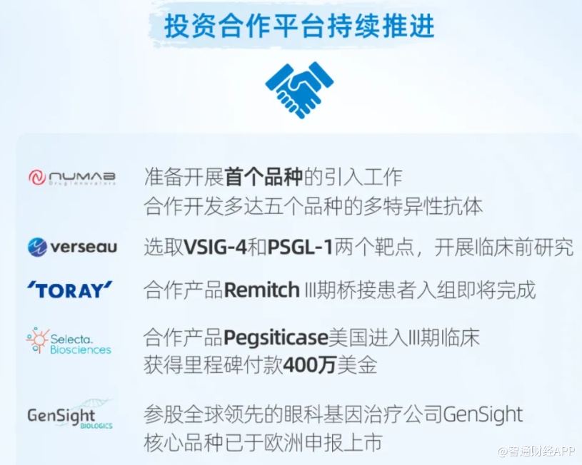 目前三生制药已相继与阿斯利康、Toray、三星Bioepis、Verseau、Numab及MPM等国际知名医药公司展开战略合作,力图通过在最具临床价值的领域开展国际化研发、投资与合作,紧贴全球范围内最前沿的治疗技术,提升前沿生物治疗药物在国内的可及性。