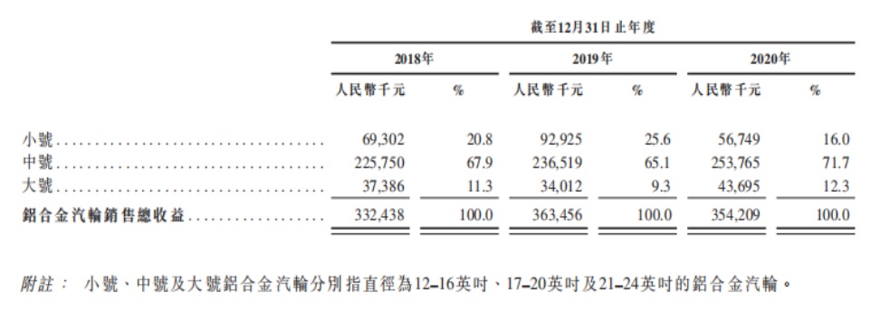 其产品主要按尺寸分类,可分为小号铝合金汽轮(用于微型和小型汽车)、中号铝合金汽轮(用于中型和大型汽车及运动型多功能汽车)、大号铝合金汽轮(用于定制的全尺寸SUV及皮卡车)。