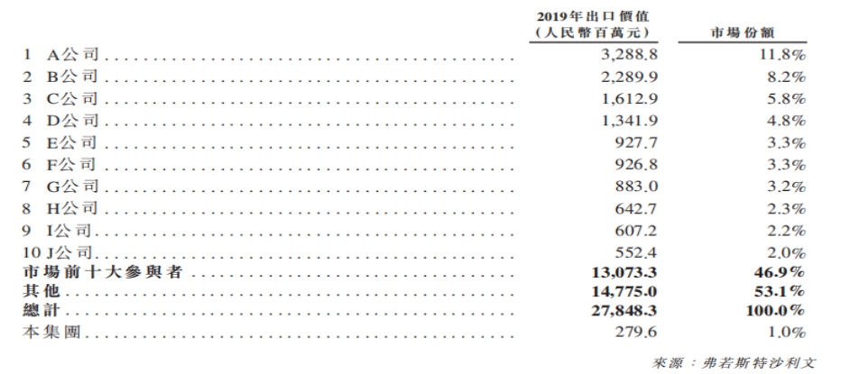 根据弗若斯特沙利文的资料,按2019年铝合金汽轮出口价值计,步阳国际占中国铝合金汽轮市场约1%的市场份额。