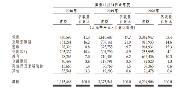 于往绩记录期间,电商公司是UJU HOLDING LIMITED最大的直接广告主客户群。截至2018年、2019年及2020年12月31日止年度,公司来自电商直接广告主的收益分别占公司总收益约41.3% 、48.0%及53.4%。