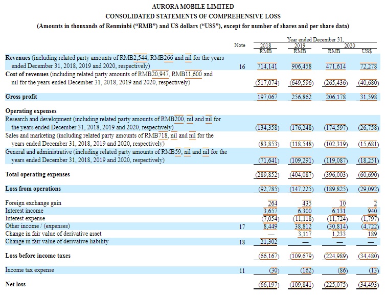 智通财经APP获悉,极光(JG.US)宣布向美国SEC递交了20F报告,披露了公司截至2020年12月31日的2020年年报和最新股权结构,其中公司2020年营收达4.72亿元(人民币,下同),同比下降48%。